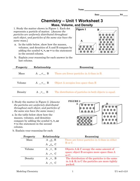 Model Chemistry: Unit 1 Worksheet 3 Answers